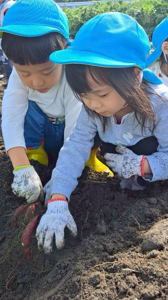 テレビで見る、お芋の業者レベルで小さな子どもが掘ってる!!